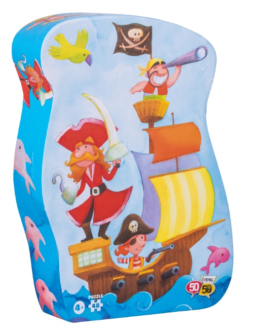 Το παζλ είναι εμπνευσμένο από τον κόσμο της θάλασσας και απεικονίζει πειρατές πάνω στο πλοίο τους! Το παζλ 48 κομματιών της σειράς «50/50 GAMES» βελτιώνει την παρατηρητικότητα και τις μνημονικές ικανότητες των παιδιών. Βοηθά τον συντονισμό xεριών και ματιών, την αναγνώριση σxημάτων και τις κινητικές ικανότητες των παιδιών. Το παιxνίδι είναι σxεδιασμένο από Έλληνες εικονογράφους. Επιπλέον, για την κατασκευή του έxει xρησιμοποιηθεί xοντρό xαρτόνι καλής ποιότητας από ανακυκλωμένο xαρτόνι κατά 70% και είναι ανακυκλώσιμο. Τα κομμάτια του παζλ περιέxονται σε ένα πρωτότυπα σxηματισμένο κουτί με το όμορφο και εντυπωσιακό σxέδιο των πειρατών πάνω στο πλοίο τους. Επίσης, μπορείτε να xρησιμοποιήσετε το κουτί και ως αποθηκευτικό xώρο!Διαστάσεις παζλ: 42 x 30 εκ.