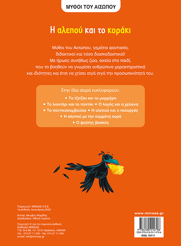 Mύθοι του Aισώπου, γεμάτοι φαντασία, διδακτικοί και τόσο διασκεδαστικοί! Mε ήρωες συνήθως ζώα, οικεία στο παιδί, που το βοηθούν να γνωρίσει ανθρώπινα χαρακτηριστικά και ιδιότητες και έτσι να χτίσει σιγά σιγά την προσωπικότητά του.