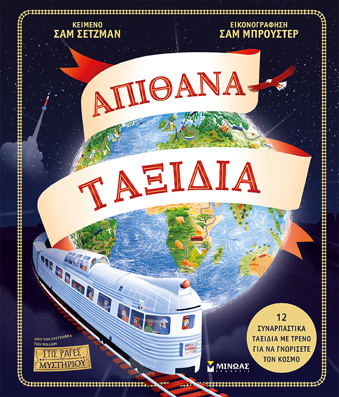Έτοιμοι για μια μεγάλη περιπέτεια;Αν ναι, σας προσκαλούμε να ταξιδέψετε μαζί μας με τα πιο θαυμαστά τρένα του κόσμου.Θα πάμε παντού: από τον Αρκτικό Κύκλο μέχρι τον Νότιο Ειρηνικό, από τη Σίλικον Βάλεϊ μέχρι την αφρικανική σαβάνα, κι ακόμα πιο μακριά.Θα επισκεφτούμε φουτουριστικές πόλεις και αρχαίους ναούς, θα δούμε άγρια ζώα,θ’ απολαύσουμε λαχταριστά γεύματα,θα περάσουμε γέφυρες και θα πάρουμε μέρος σε παραδοσιακές γιορτές.Κι όλα αυτά ταξιδεύοντας με το τρένο!Ο βραβευμένος συγγραφέας Σαμ Σέτζμαν έγραψε ένα βιβλίο που αποδεικνύει ότι η εξέλιξη του σιδηροδρόμου και τα επιτεύγματα της μηχανικής άλλαξαν για πάντα τη ζωή μας,κι ότι τα ταξίδια με το τρένο μάς φέρνουν τον έναν πιο κοντά στον άλλον.Επιβιβαστείτε, λοιπόν,και ετοιμαστείτε να γνωρίσετε τον κόσμο!