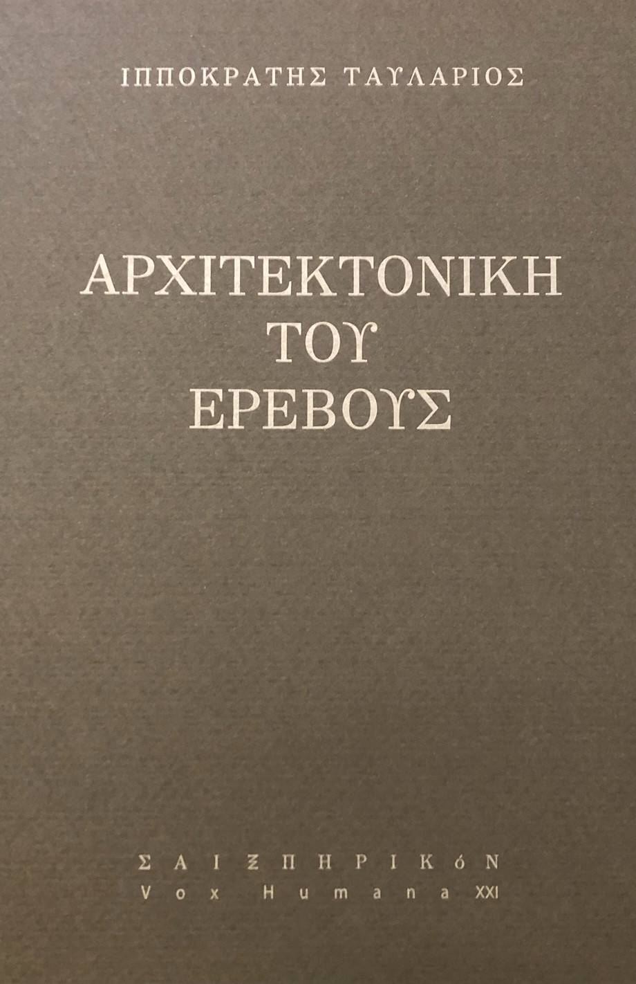 Ἡ Ἀρχιτεκτονικὴ τοῦ Ἐρέβους εἶναι ἕνα πεζὸ ποίημα σὲ τρία μέρη. Μιὰ ἀποτύπωση ἑνὸς νεκρικοῦ τόπου. Μνῆμα – Ἔρως – Θάνατος. Ὁ ποιητὴς ἀπὸ ἕνα ἑρμητικὰ κλεισμένο δωμάτιο ἀναδύεται στὰ ἄστρα, βυθίζεται στὸν γνόφο τῆς θαλάσσης, καὶ ἀπὸ κεῖ στὸ ὄνειρο, στὸ ποθούμενο πρόσωπο, μὲ ἕναν πόθο ποὺ τὸν παρασύρει στὴν μέθη τοῦ βυθοῦ… καὶ μοιραία στὸν πνιγμό.