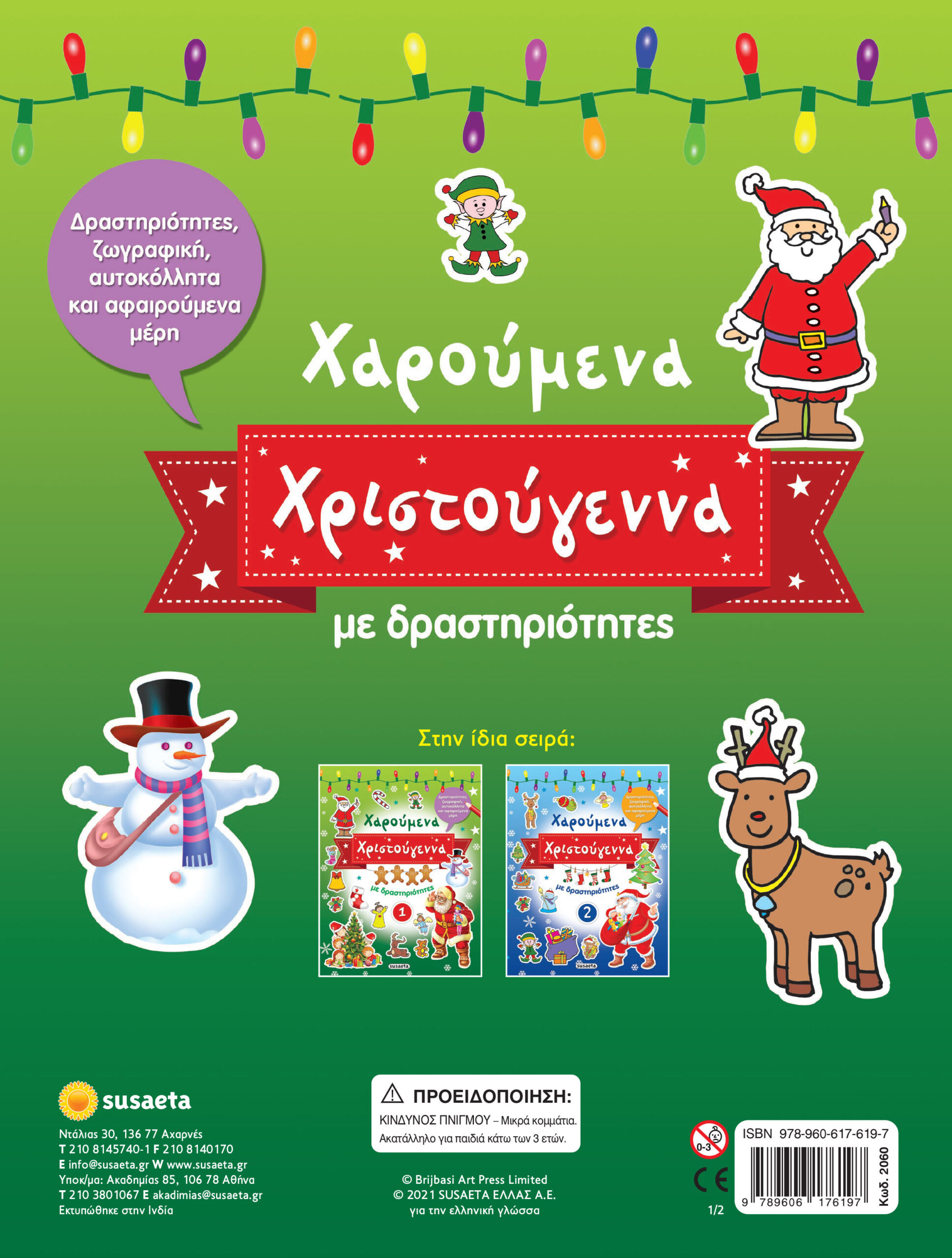 Ανυποµονείς για τα Χριστούγεννα; Αυτές οι γιορτές θα είναι οι πιο χαρούµενες παρέα µε δραστηριότητες και µπόλικη ζωγραφική! Στο βιβλίο αυτό θα βρεις επίσης αυτοκόλλητα, καρτελάκια για τα δώρα που θα προσφέρεις, και ταµπελάκια για το πόµολο της πόρτας σου!