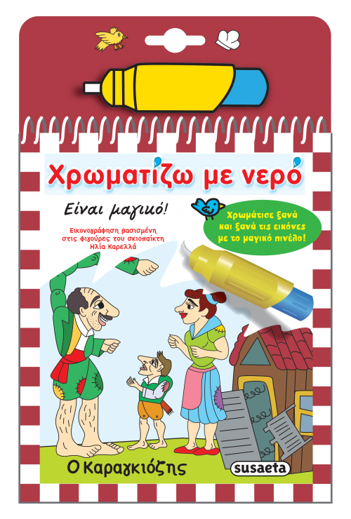 Γέμισε το μαγικό πινέλο με νερό και δες σκηνές από τις ιστορίες του Καραγκιόζη να μεταμορφώνονται στις πιο πολύχρωμες και χαρούμενες ζωγραφιές. Άφησέ τες να στεγνώσουν για να τις χρωματίσεις ξανά και ξανά!
