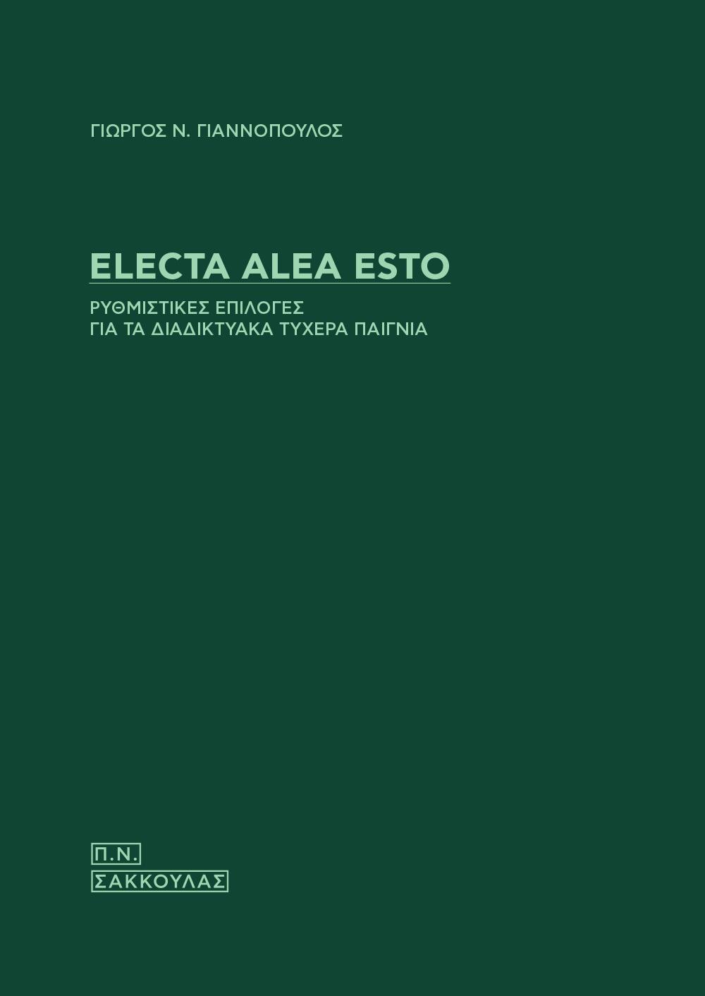 Electa alea esto: οι κύβοι στη σύγχρονη διαδικτυακή πραγματικότητα δεν ρίπτονται, αλλά επιλέγονται (με «κλικ») επί της οθόνης. Έχοντας ως τίτλο αυτή την παράφραση της γνωστής ρήσης του Καίσαρα «Ἀνεῤῥίφθω κύβος» (jacta alea est) και υπότιτλο «Ρυθμιστικές επιλογές για τα διαδικτυακά τυχερά παίγνια», κυκλοφόρησε από τις Εκδόσεις Π.Ν. Σάκκουλας το νέο βιβλίο του Καθηγητή της Νομικής Σχολής Αθηνών, Γιώργου Γιαννόπουλου.