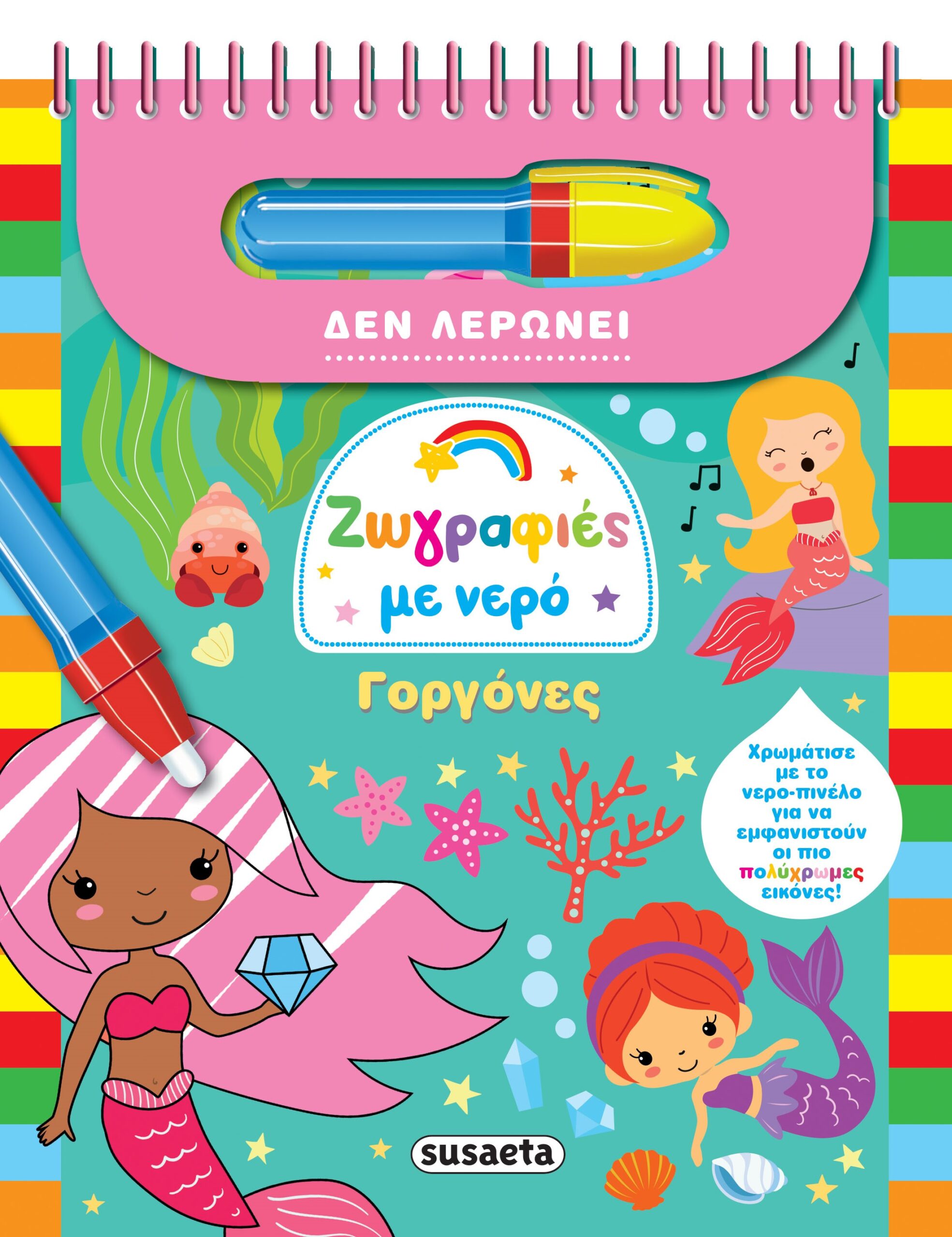 Ανακάλυψε τον μαγικό κόσμο των χρωμάτων με το νερο-πινέλο! Γέμισε το πινέλο σου με νερό και άρχισε να χρωματίζεις τις σελίδες του βιβλίου! Θα δεις τις πιο γλυκές γοργόνες να ζωντανεύουν μπροστά σου! Μόλις στεγνώσουν οι σελίδες, το χρώμα θα εξαφανιστεί και τότε μπορείς να τις χρωματίσεις ξανά και ξανά, όσες φορές θέλεις!