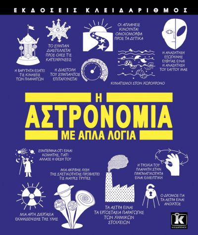 Πώς μπορούμε να μετρήσουμε το σύμπαν; Πού βρίσκεται ο «ορίζοντας γεγονότων»; Τι είναι η «σκοτεινή ύλη»;Από την αυγή του πολιτισμού, οι άνθρωποι παρατηρούσαν τα ουράνια φαινόμενα και επιχειρούσαν να τα εξηγήσουν. Έκτοτε, με το πέρασμα των αιώνων, η επιστήμη της αστρονομίας μάς βοήθησε να διευρύνουμε τους ορίζοντες της γνώσης μας και να κατανοήσουμε καλύτερα το σύμπαν και τη θέση μας σ’ αυτό.Γραμμένο με απλή και κατανοητή γλώσσα, το βιβλίο Η αστρονομία με απλά λόγια είναι γεμάτο συνοπτικές αλλά πλήρεις ερμηνείες που παρακάμπτουν τη δυσνόητη ορολογία, διαγράμματα που εξηγούν βήμα προς βήμα τις περίπλοκες θεωρίες, κλασικά αποφθέγματα που εντυπώνουν στη μνήμη τις αστρονομικές ανακαλύψεις και έξυπνη εικονογράφηση που ενισχύει την αντίληψή μας για τον κόσμο των άστρων.Όποιες κι αν είναι οι γνώσεις σας στην αστρονομία –είτε είσαστε ενθουσιώδης μελετητής είτε «επιστήμονας της πολυθρόνας»– στο βιβλίο αυτό θα βρείτε άφθονα ερεθίσματα.