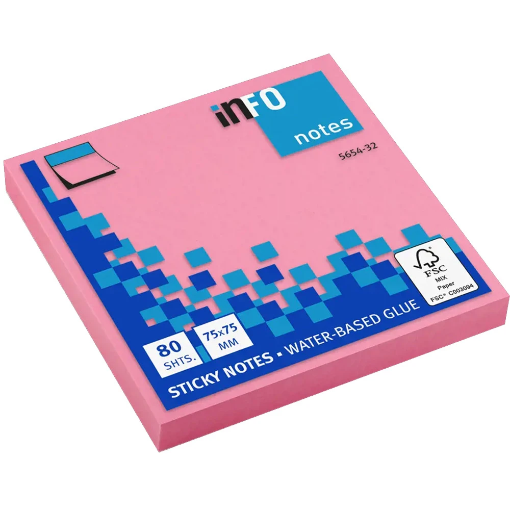 Info-Notes 75x75mm Ροζ Αυτοκόλλητα σημειώσεων 80 φύλλα 5654-32. Κολλήστε τις σημειώσεις σας οπουδήποτε και θα μείνουν κολλημένες στη θέση τους ακόμα και μετά από πολλές ημέρες.