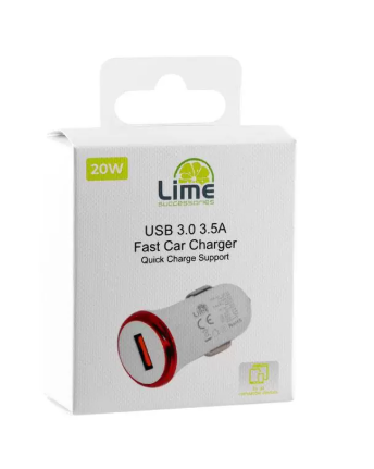 LIME ΦΟΡΤΙΣΤΗΣ ΑΥΤΟΚΙΝΗΤΟΥ USB 3.0 FAST CAR CHARGER QC 3.0 LCU02 20W 5V-3.5A/9V-2.4A/12V-1.8A WHITE