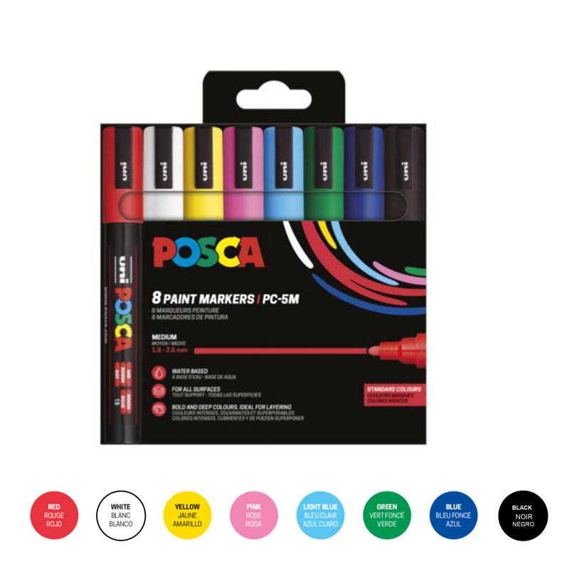 ΜΑΡΚΑΔΟΡΟΙ UNI POSCA PC-5M MEDIUM ΣΕΤ 8 BASIC