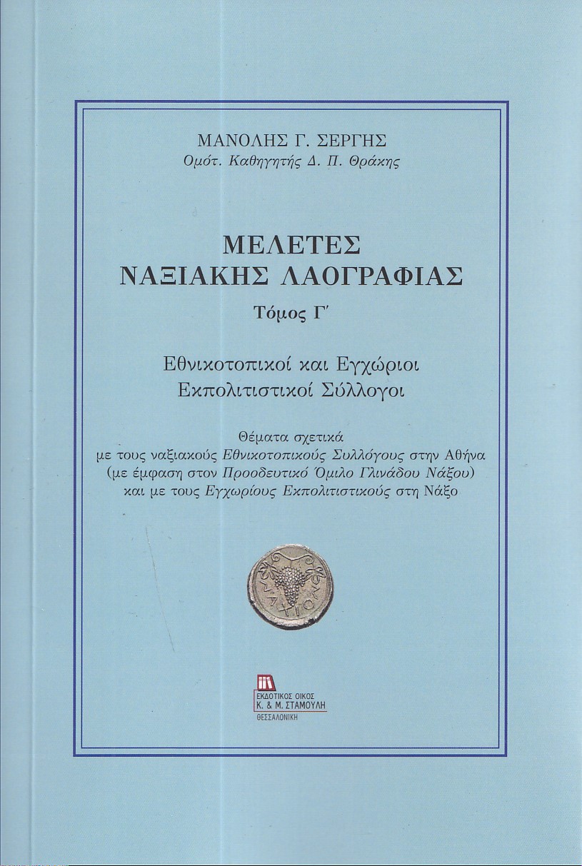 ΜΕΛΕΤΕΣ ΝΑΞΙΑΚΗΣ ΛΑΟΓΡΑΦΙΑΣ. ΤΟΜΟΣ Γ΄ ΕΘΝΙΚΟΤΟΠΙΚΟΙ ΚΑΙ ΕΓΧΩΡΙΟΙ ΕΚΠΟΛΙΤΙΣΤΙΚΟΙ ΣΥΛΛΟΓΟΙ