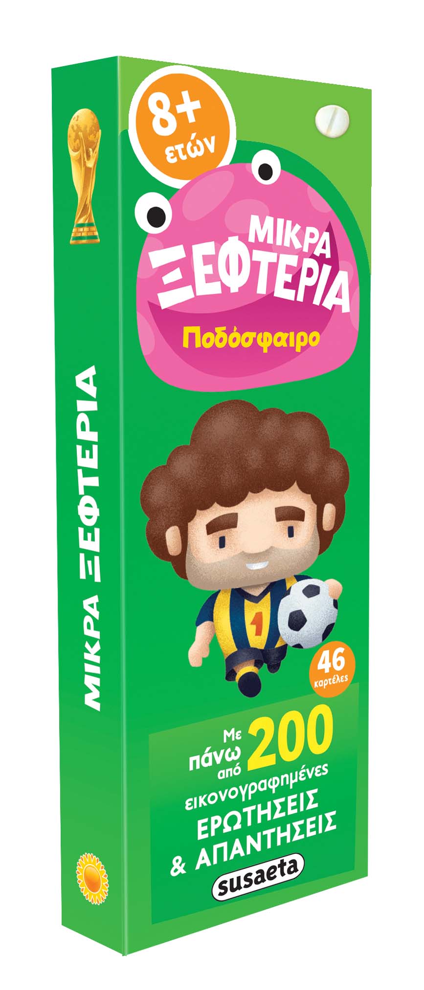 Παιχνιδοκαρτέλες με πάνω από 200 ερωτήσεις, απαντήσεις και ενδιαφέρουσες πληροφορίες, για να ανακαλύψεις τον κόσμο του ποδοσφαίρου, να παίξεις και να διασκεδάσεις, ασκώντας παράλληλα τη μνήμη και την κριτική σου σκέψη!