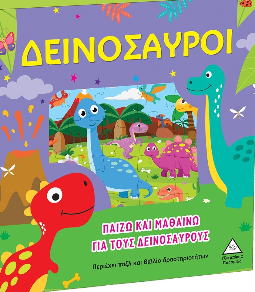 Παίζουμε και μαθαίνουμε για τους δεινόσαυρους μέσα από ένα βιβλίο με υπέροχες εικόνες κι ένα διασκεδαστικό και πολύχρωμο παζλ.