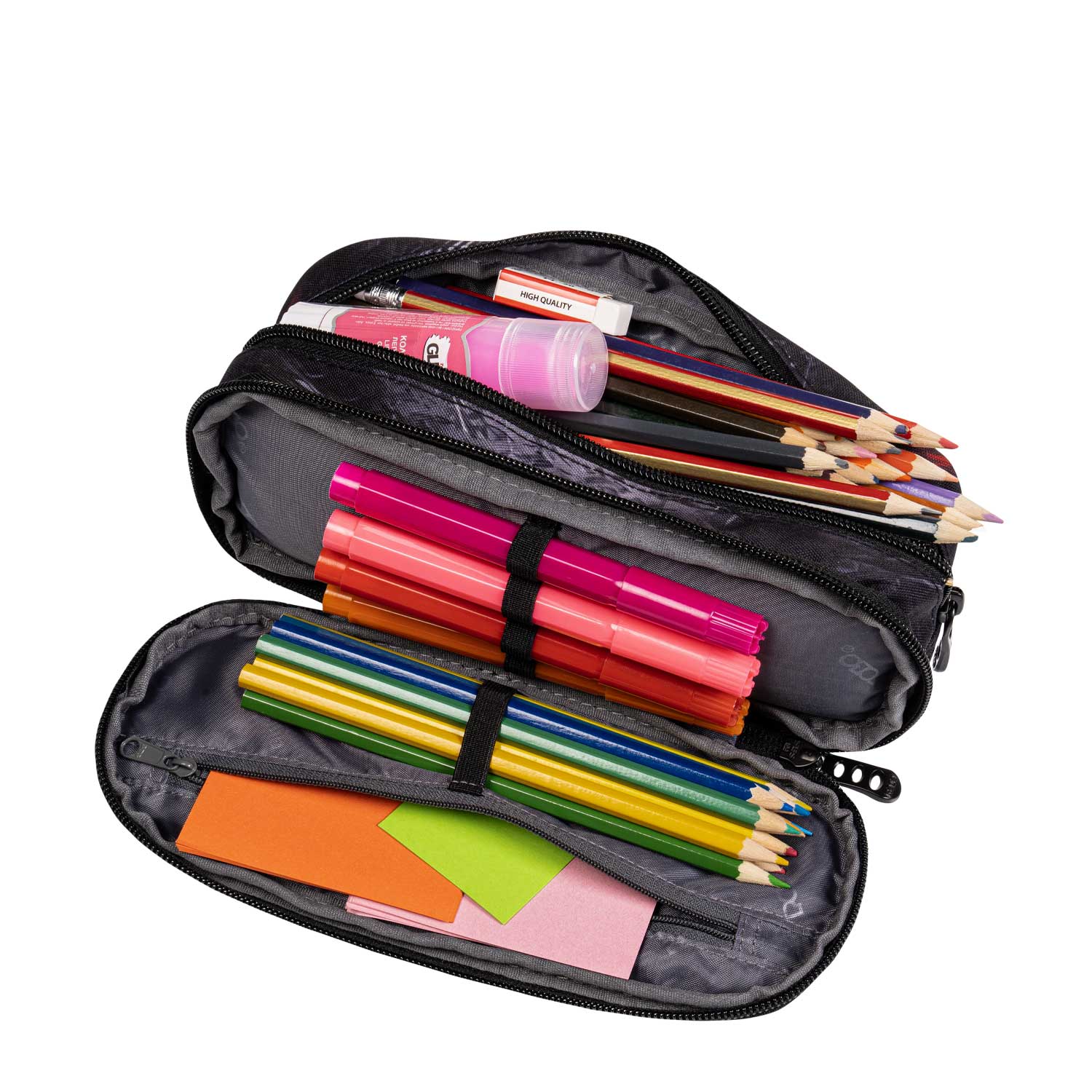 2 θήκες με εσωτερικά θυλάκια για στυλό και μολύβια. Εσωτερική τσέπη με φερμουάρ.