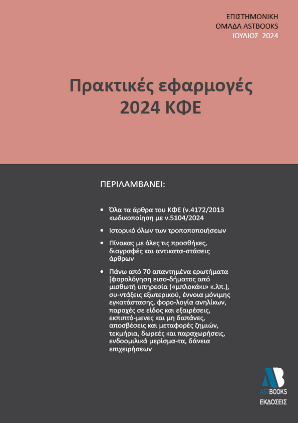 Όσον αφορά την παρούσα έκδοση με τίτλο «Εφαρμογές ΚΦΕ 2024», η δομή του βιβλίου έχει σχεδιαστεί με σκοπό να προσφέρει στους αναγνώστες ένα εύχρηστο εργαλείο για την κατανόηση και την εφαρμογή των διατάξεων του Κώδικα Φορολογίας Εισοδήματος, ως εξής: