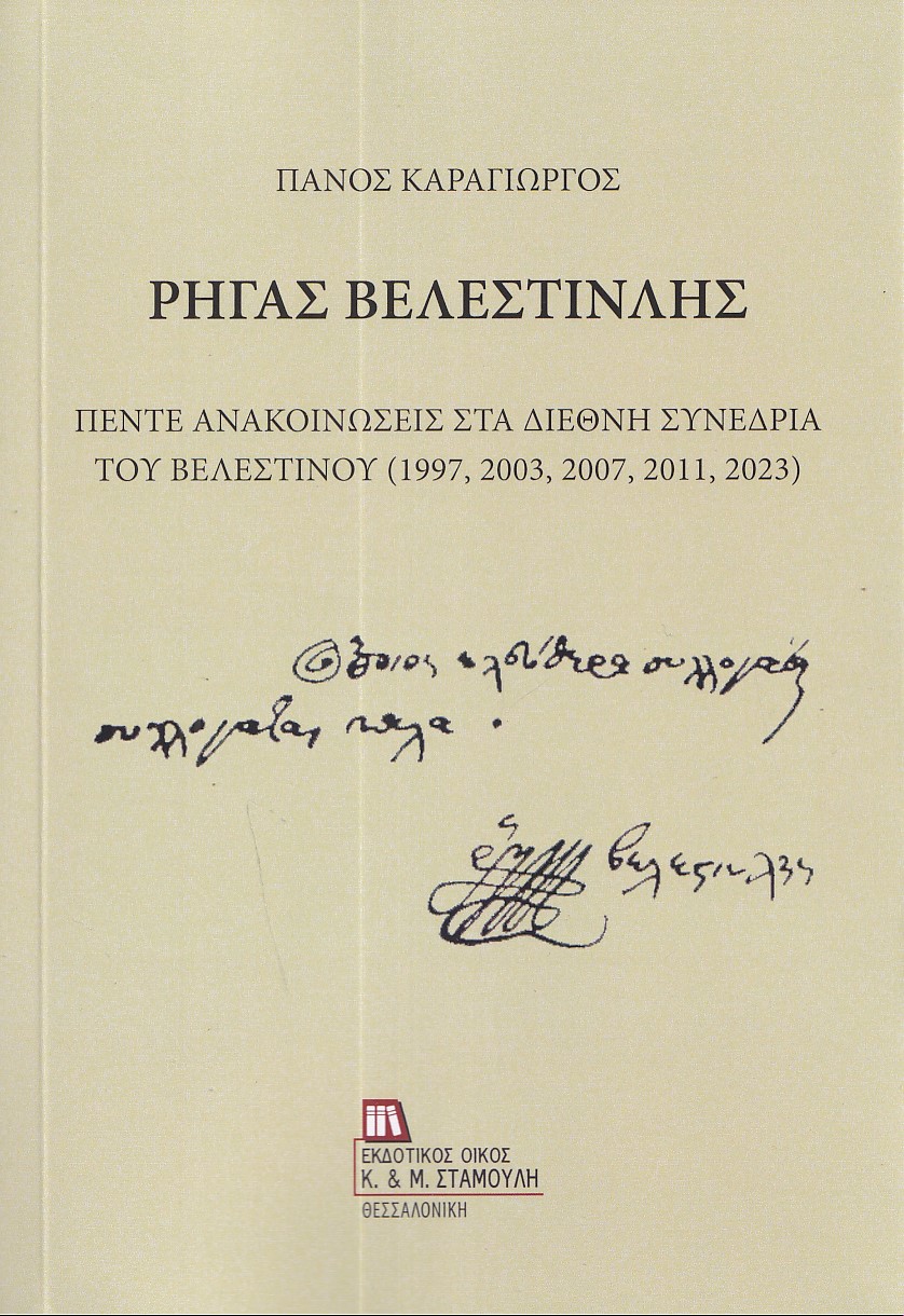 ΡΗΓΑΣ ΒΕΛΕΣΤΙΝΛΗΣ ΠΕΝΤΕ ΑΝΑΚΟΙΝΩΣΕΙΣ ΣΤΑ ΔΙΕΘΝΗ ΣΥΝΕΔΡΙΑ ΤΟΥ ΒΕΛΕΣΤΙΝΟΥ (1997, 2003, 2007, 2011, 2023)