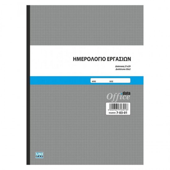 Ημερολόγιο εργασιών από την Uni Pap με διαστάσεις Α4 21x29cm, διπλότυπο αυτογραφικό (1 πρωτότυπο και 1 αντίγραφο).